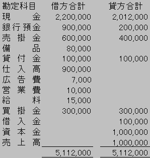 =100,000+1,000,000+1,000,000=2,100,000試算表では借方合計と貸方合計とが一致するから、差額